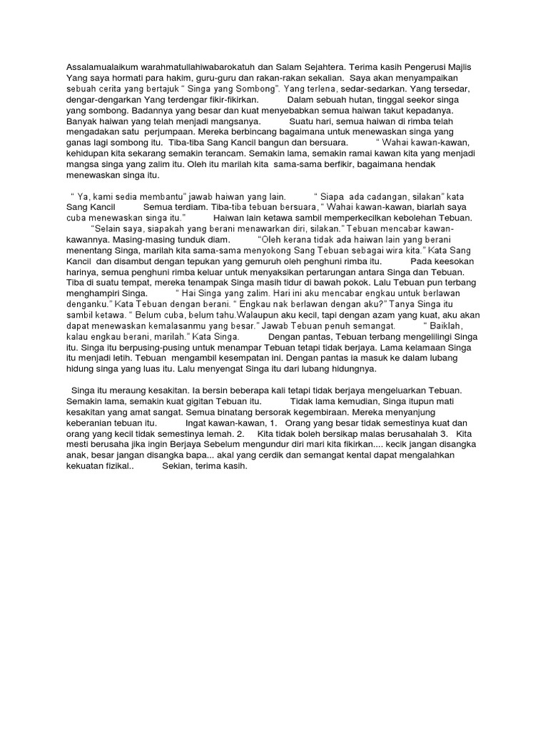 Contoh Teks Pertandingan Bercerita Bahasa Melayu Sekolah Rendah Tahap 2 - Soal teks diskusi 21 sampai 30.. Kata penutup dalam teks laporan. Doc pertandingan bercerita bahasa inggeris tahap 2 bagi karnival ko kurikulum abu zahid academia edu. Contoh 2 teks pranatacara peringatan hut ri. Disediakan oleh nur azlina ayob ( hbef2703). Teks berita adalah teks yang berisi tentang informasi yang terjadi di dunia dan diterbitkan oleh media masa.